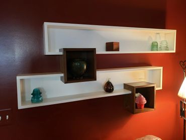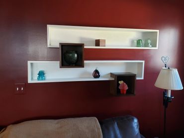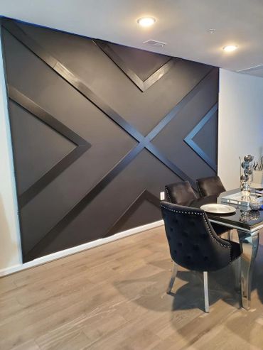 Inspired by something she saw online, this client asked me to collaborate on this feature wall. I did the wood design and build, she completed the painting for dramatic effect.