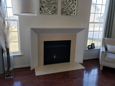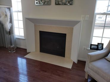 Add a bit of style with the clean modern look of an angled fireplace surround. Plenty of space on top for traditional mantel pieces